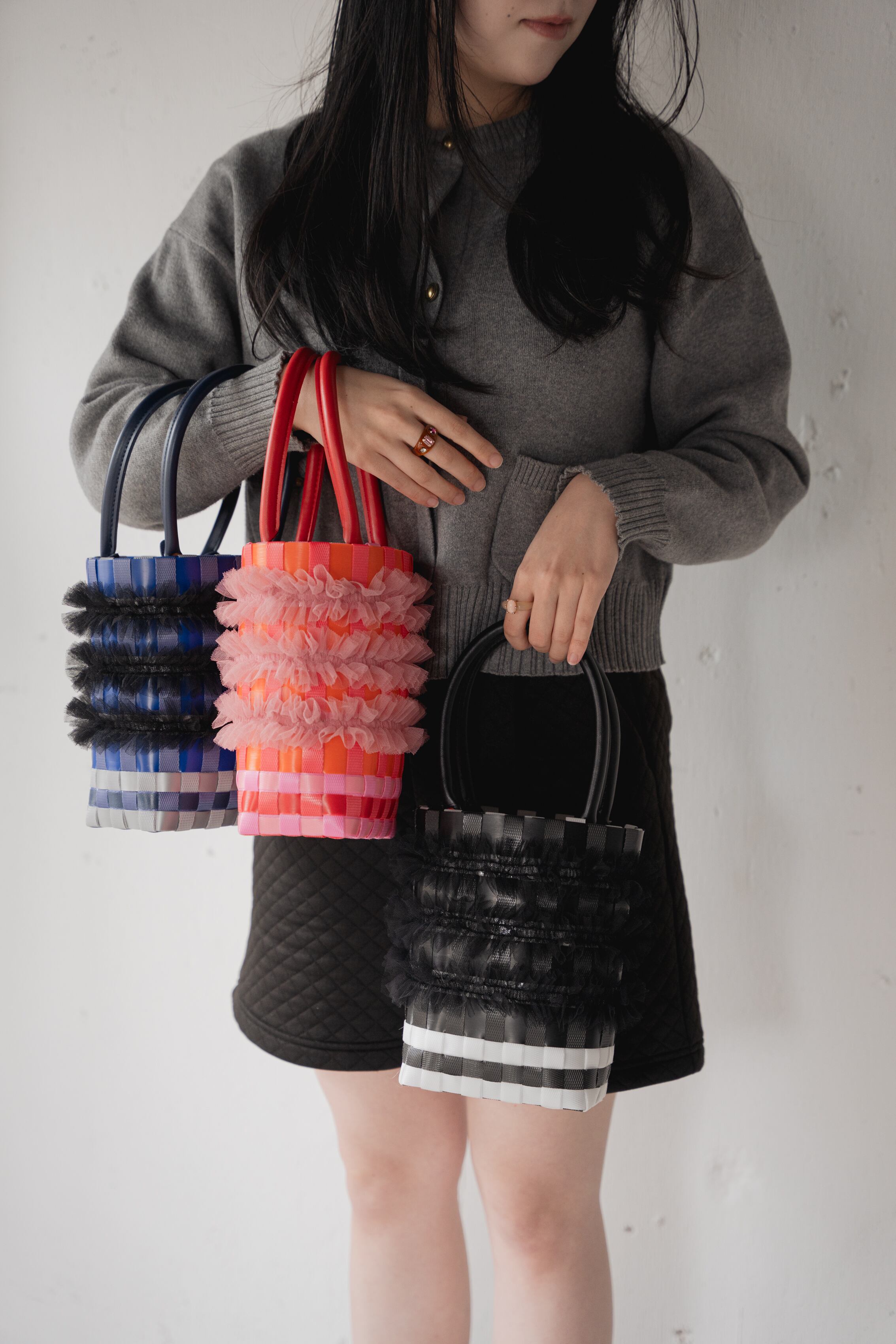 長財布がすっぽり入る縦長バッグに黒のチュールフリルを3段装着しました❣️