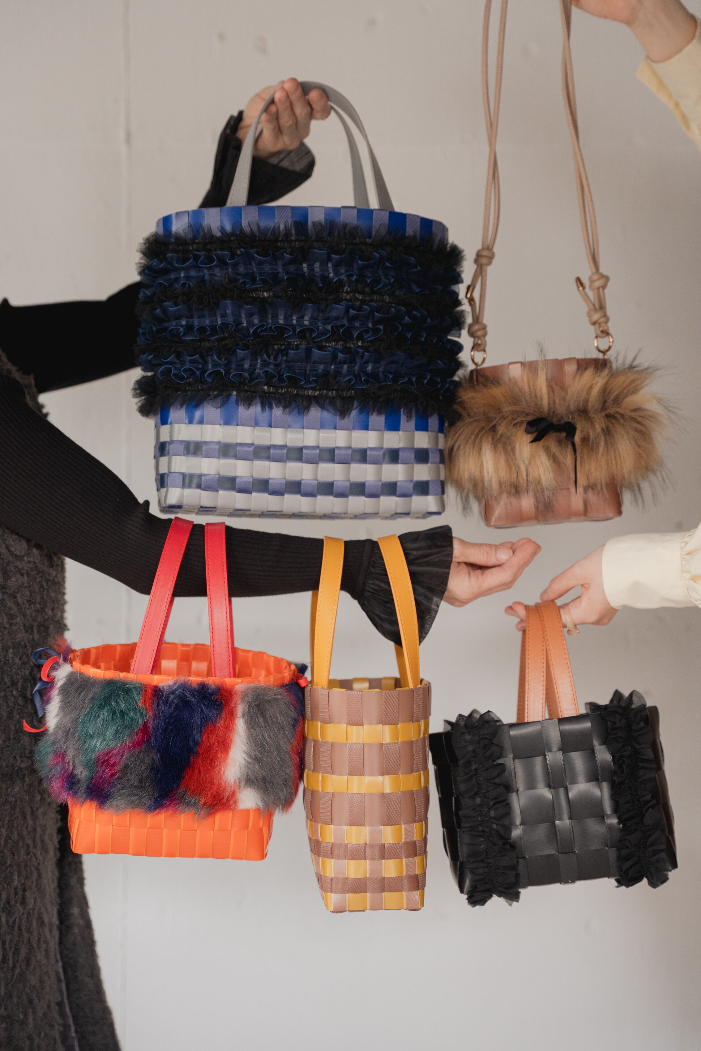 持ち手も黄土色に近い黄色のPUレザーにして統一感あるバッグにしました♡